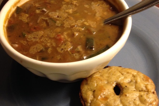 -8 strips of cooked turkey bacon (to crumble on top of each bowl at the very end-1 strip per bowl served) (I prefer Lou’s Garrett Valley Naturals All Natural Uncured Peppered Turkey Bacon…found at Earthfare)
