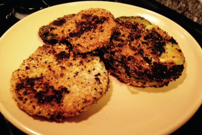 *I went to the Farmer’s Market this past weekend (one of my favorite Saturday morning activities when I have the time) and loved being around all of the beautiful fresh produce and taking mental pictures for recipe ideas. As you know, in late July and early August, tomatoes are amazing this time of year. When I came across green tomatoes, I thought, Sara Darby, you are a Southerner and have never had fried green tomatoes. This is a crime. Therefore you need to buy and make some…paleo of course. I did and I totally understand what the hype is about them! They are delicious!!!! For breakfast, lunch, side at dinner, they are better than I ever thought they would be! Check out my awesome paleo version below and enjoy!!!
